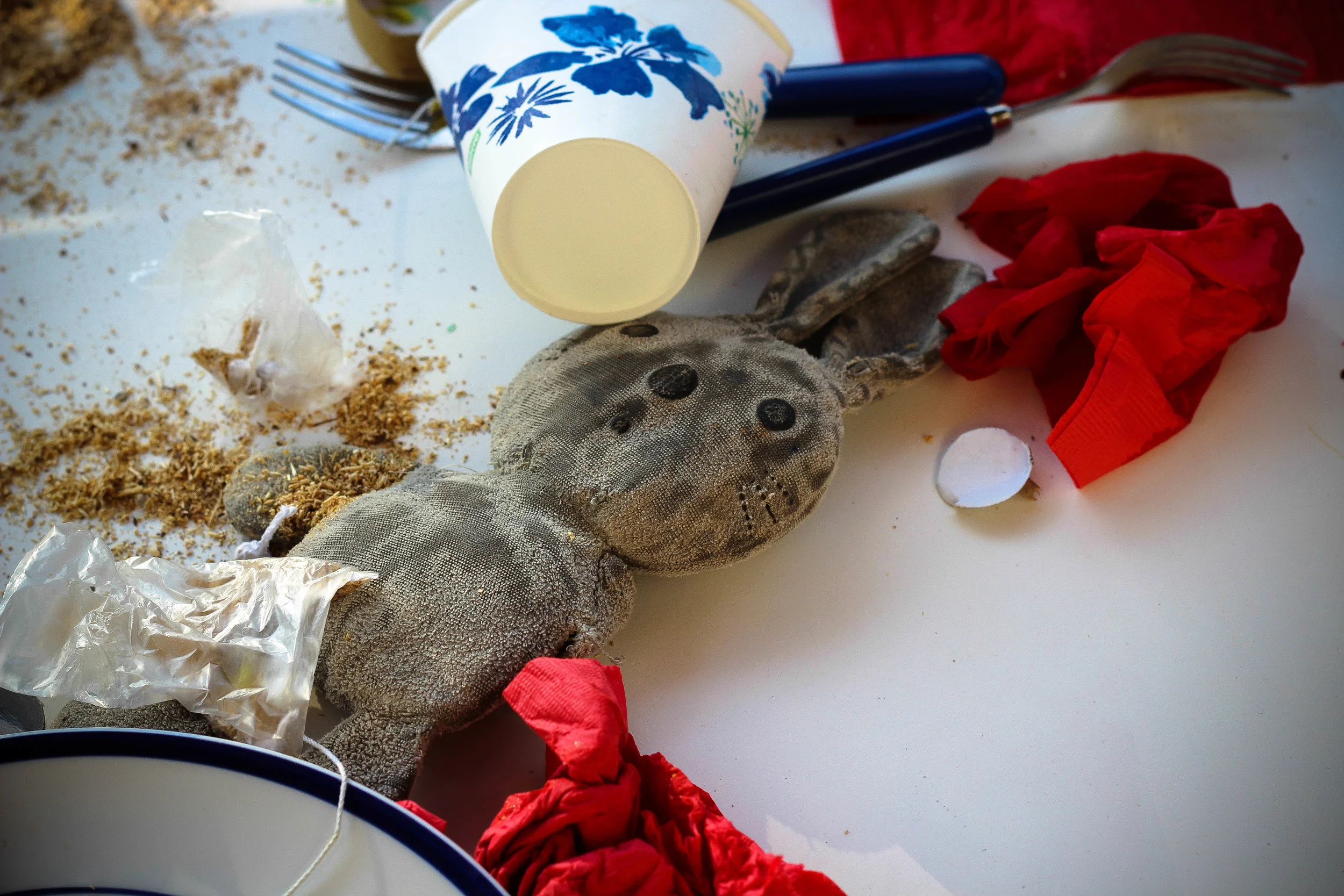TAGS: holiday weekend, Monday blues, 4th of July, long weekends, overindulgence, Bunny, pop-its, debauchery, children's table, back to work, megan stocker, mundane morsel